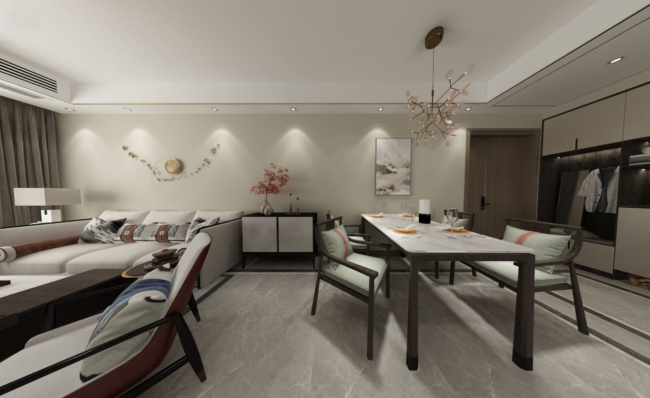 空間裝飾多采用簡(jiǎn)潔硬朗的直線條。直線裝飾在空間中的使用,不僅反映出現(xiàn)代人追求簡(jiǎn)單生活的居住要求,更迎合了中式家具追求內(nèi)斂、質(zhì)樸的設(shè)計(jì)風(fēng)格,使"新中式"更加實(shí)用、更富現(xiàn)代感。
