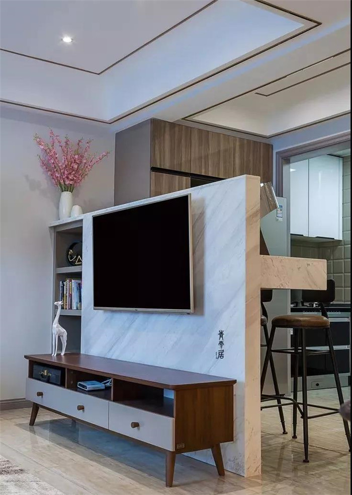 ②電視柜、餐邊柜在隔斷的同時(shí)還能做很多收納。