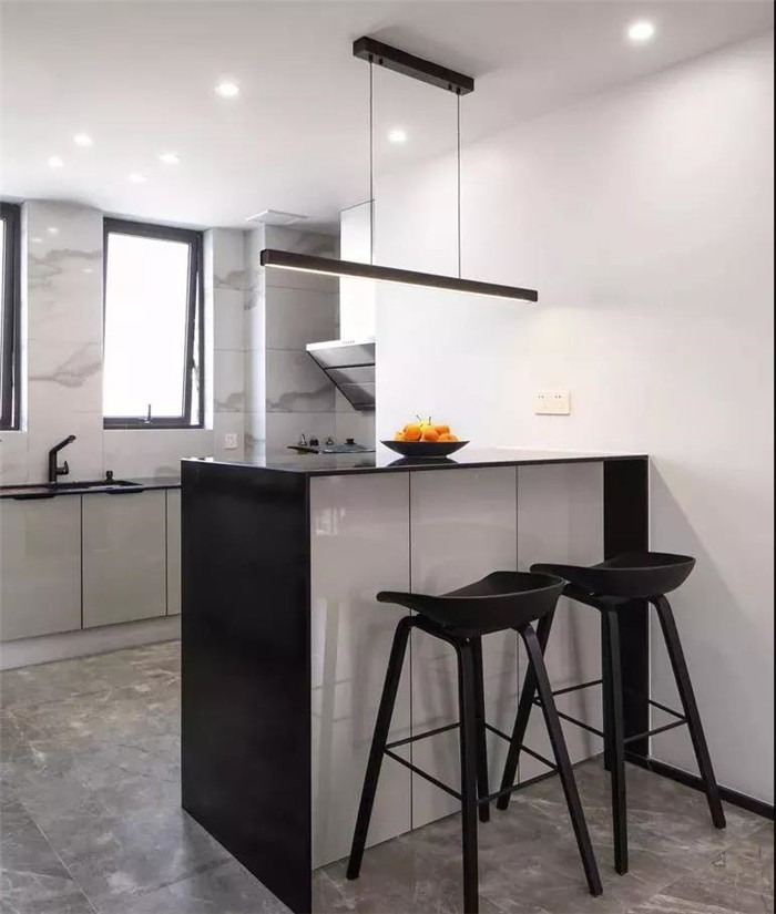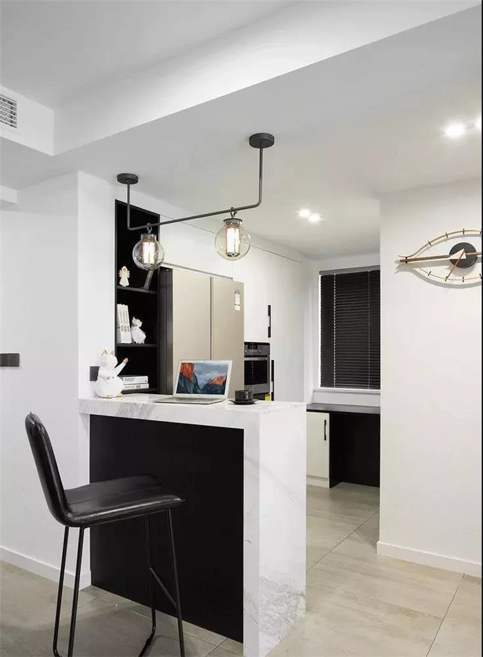 ①吧臺(tái)將收納區(qū)和客廳隔開,位置剛剛好。