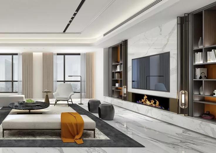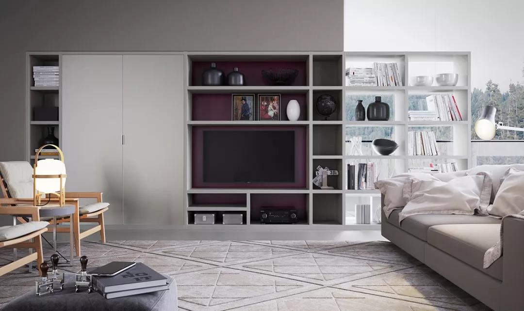 你還可以根據(jù)自己的需求靈活選擇,封閉式或開放式的柜門,避免視覺雜亂,或者干脆將電視隱藏起來,需要的時候打開移門,就能為整個客廳顏值加分不少哦~