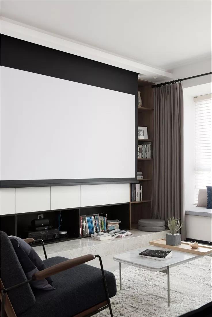 拆掉電視機,在天花影藏投影幕布,客廳隨時變身家庭影院。