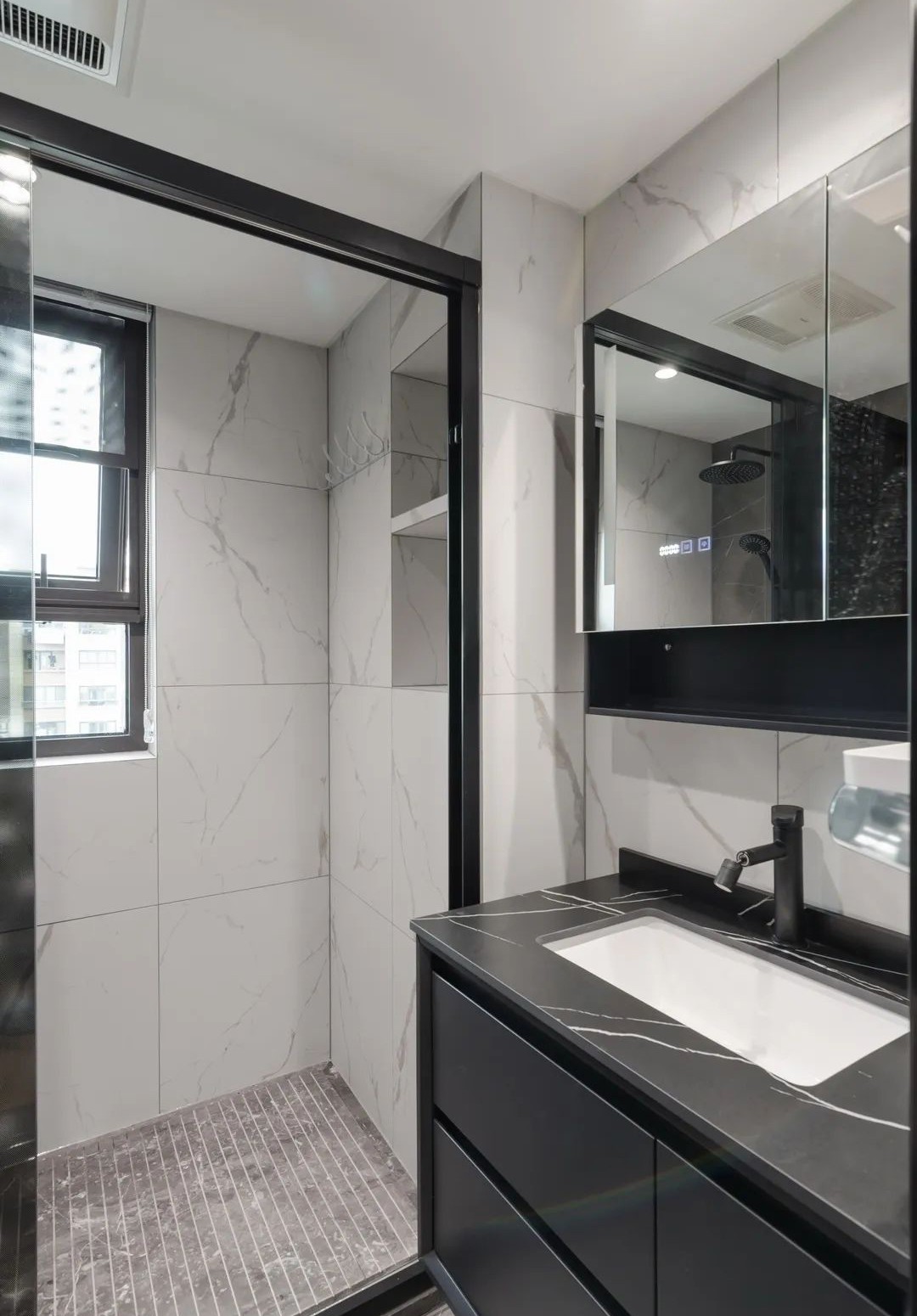 黑白色系的主衛(wèi)區(qū),簡練而優(yōu)雅。